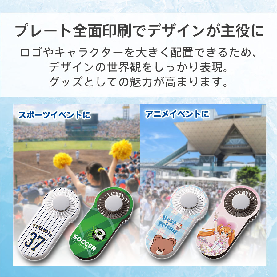 全面印刷が可能な、人気の冷却プレート付きのハンディファンです。