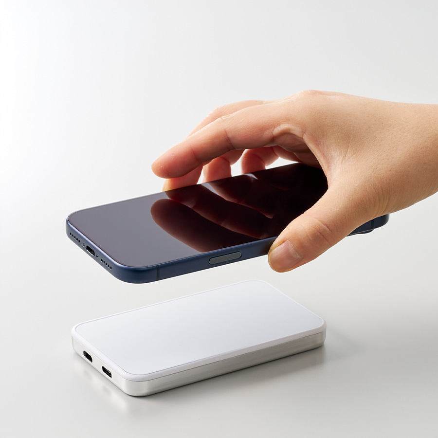 Magsafe対応のスマートフォンやMagsafe対応シール装着時にマグネット機能を使用して充電が可能です。