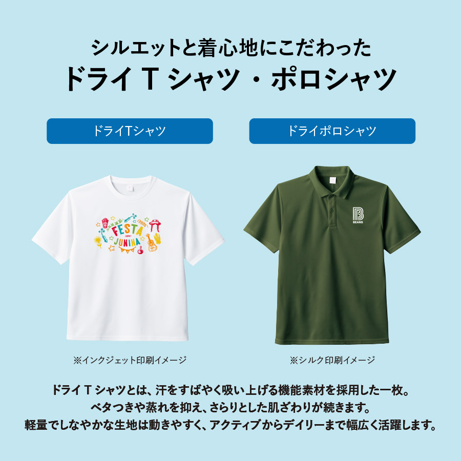 チームやブランドのイメージに合わせたカラー選択がしやすく、さまざまなプリントデザインにフィットします。