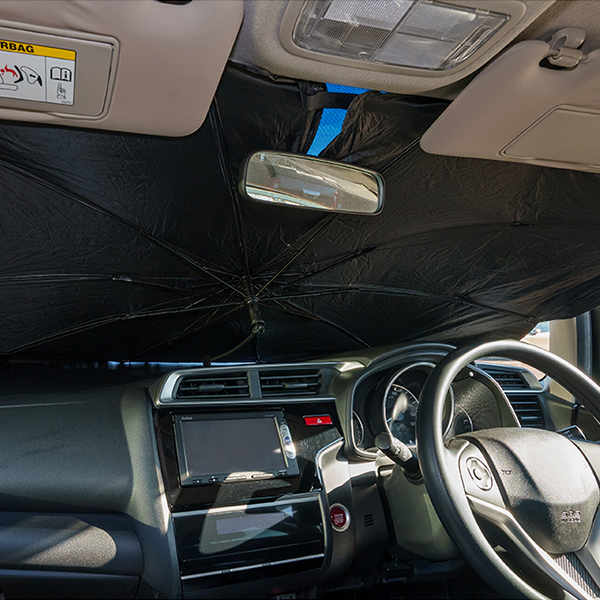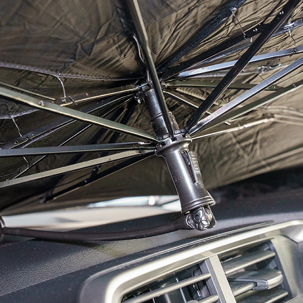 パッと傘のように広げてすぐに使える車用フロントサンシェード。