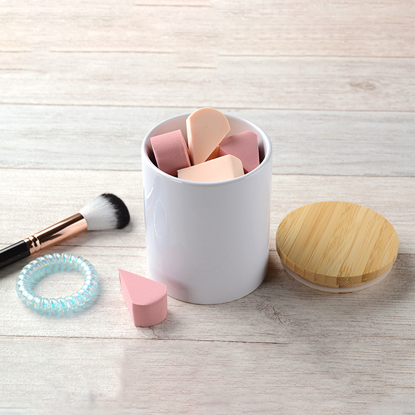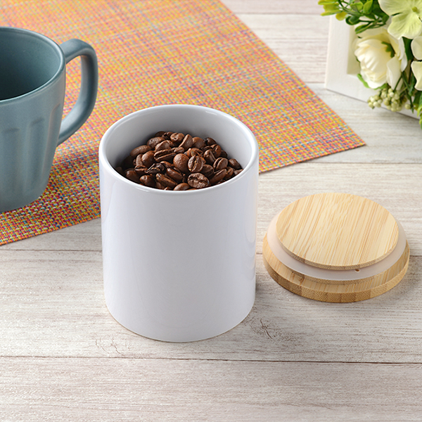 シンプルな磁器製のキャニスターは、竹製のフタをパッキンで閉じることができるしっかり者。