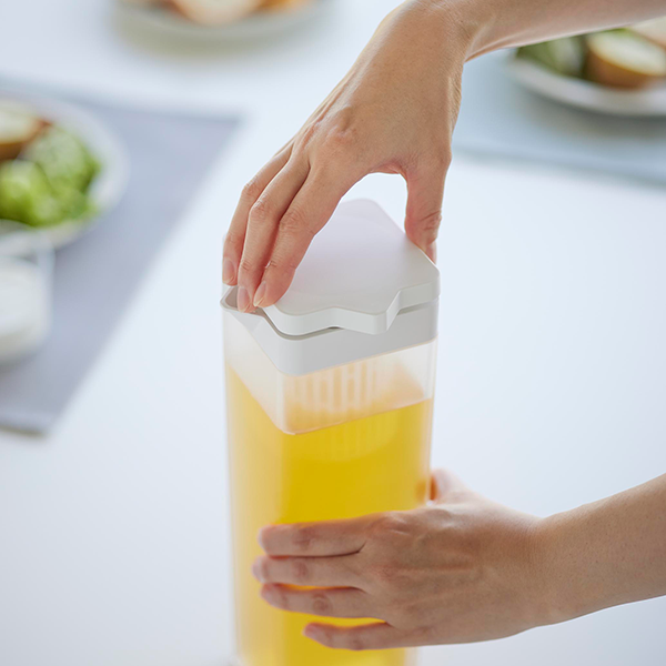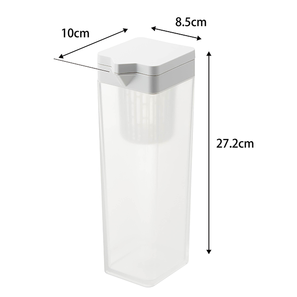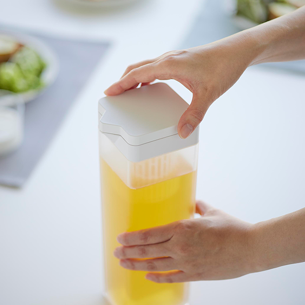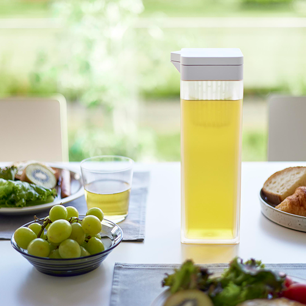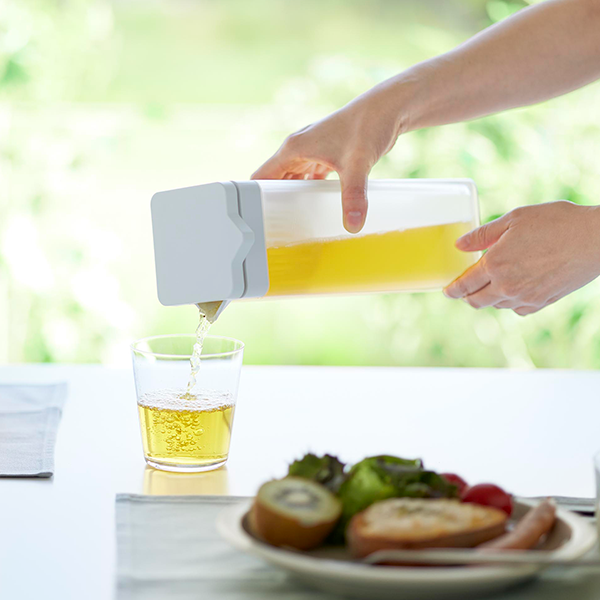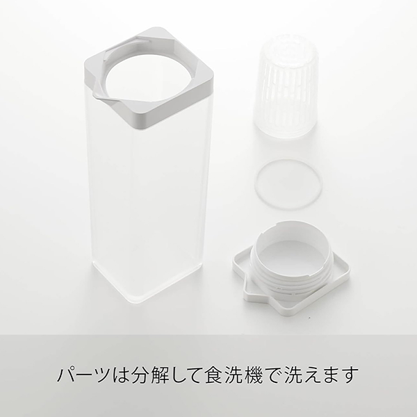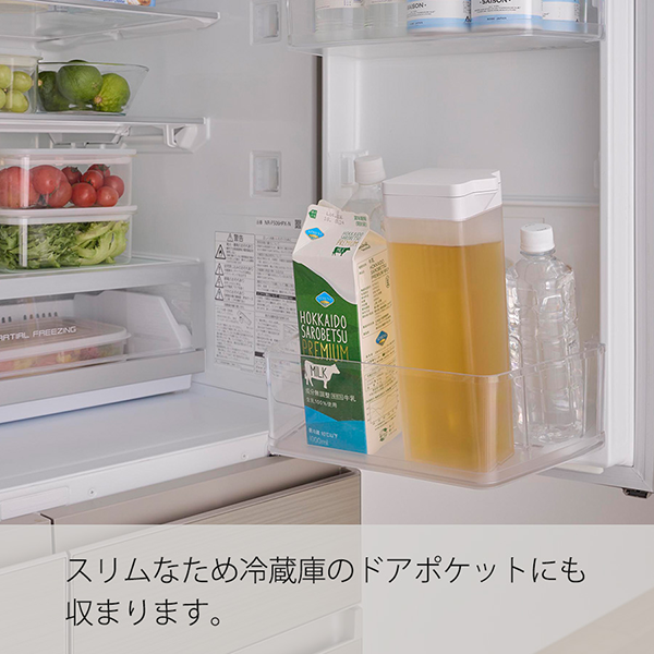スリムなため片手でも持ちやすく、注ぎやすい形状が特徴。ドアポケットの中に入れてもコンパクトに収まります。食洗器にも対応しているのでお手入れも簡単です。
