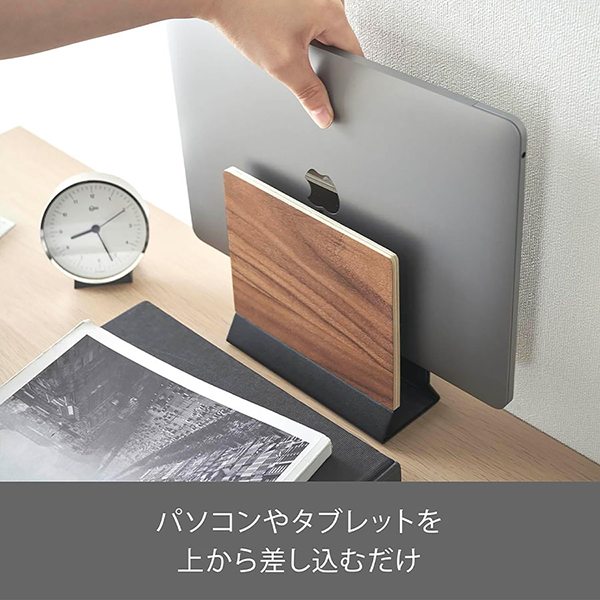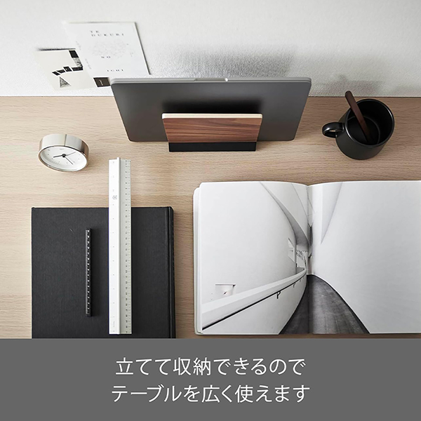 立てて収納できるため、ノートパソコンが不要な際に使用することでテーブルを広々と使えます。天然木がアクセントになり、お部屋におしゃれになじんでくれます。