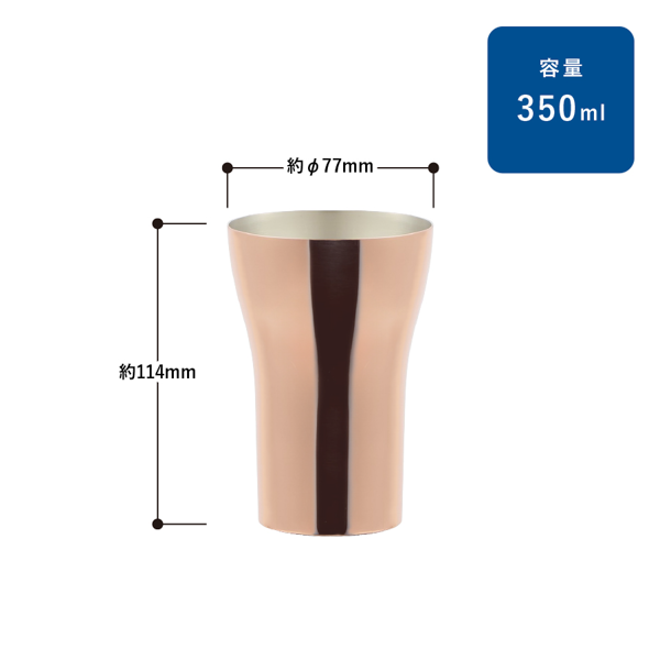 燕地域で作られたことと品質安全性が確認された「メイド・イン・ツバメ」認定の純銅タンブラーです。 純銅ならではの上質な風合いが、高級感を求める贈り物にふさわしい存在感を演出します。350mlの使いやすいサイズ感で、特別感と実用性を両立。永年勤続表彰や役員向け記念品などにおすすめです。