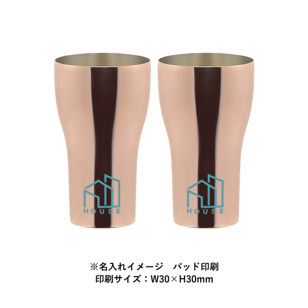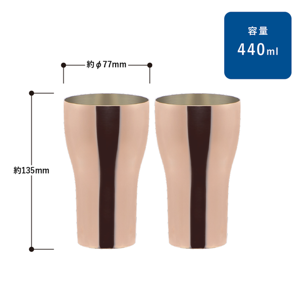 燕地域で作られた確かな品質と安全性を示す「メイド・イン・ツバメ」認定の純銅ペアタンブラー。 高級感と実用性を兼ね備え、特別な節目にふさわしいアイテムです。440mlのゆとりあるサイズで、冷たい飲み物をゆったり楽しめるのが魅力。周年行事の記念品や上位会員向けの贈答品などプレミアムな贈り物としておすすめです。
