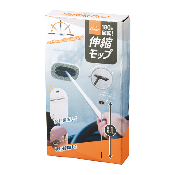 狭い隙間もサッと拭ける伸縮モップです。車のフロントガラスや高い窓の掃除に便利。 先端を外してミニスクレーパーにもなります。