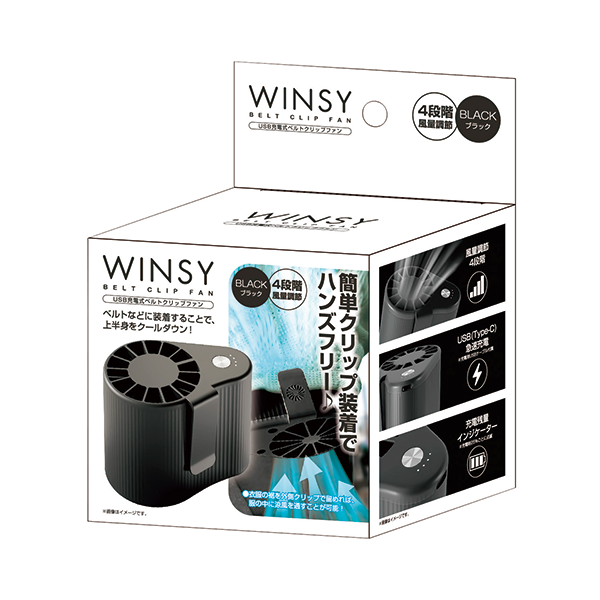 簡単クリップ装着でハンズフリーで使えるファン。ベルトなどに装着して上半身をクールダウン。 風量も4段階に調節可能。