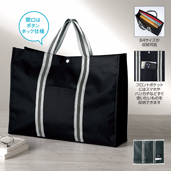 どなたでも使いやすいベーシックなデザインの大きなトートバッグは、普段使いだけでなくビジネスシーンにもおすすめです。 ハリのある生地で高級感も◎。流行を問わないシンプルでおしゃれなデザイン、持ち運びしやすい形状は利便性が高いのでプロモーション効果も長く期待できます。