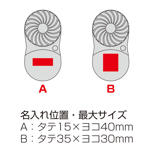 | 備考 | 【名入れ可能商品】 連続使用可能時間:約1~2時間(風量により異なる) 蓄電時間:約2時間 バッテリー容量:500mAh ご注文は24個単位でお願いします。 |