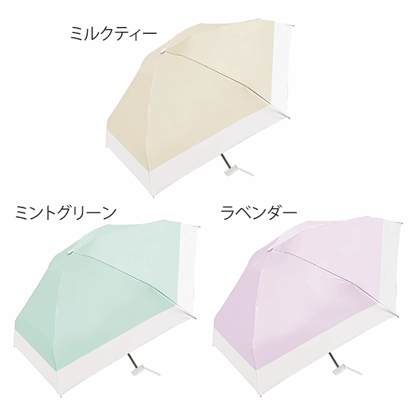 シンプルな中にセンスが光るくすみカラー×爽やかなホワイトのバイカラーデザイン。携帯もノンストレスなコンパクトタイプの晴雨兼用傘です。 日差しにも突然の雨にも強い晴雨兼用傘は、晴雨兼用傘は春夏の販促品の中でも人気アイテム。おしゃれに敏感な女性や社会人、ファミリー向けなど幅広いイベントのノベルティにお使いいただけます。