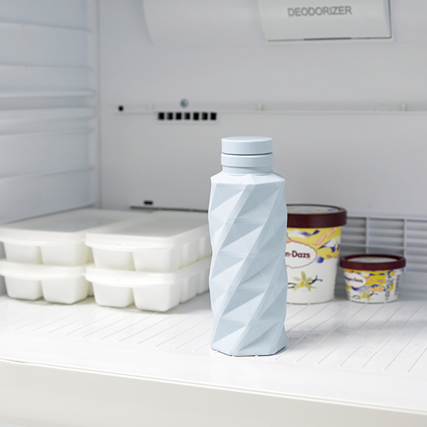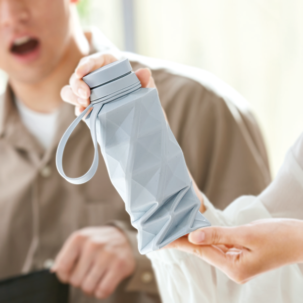 大人気のひねって畳めるシリコンボトル。 持ち運びバンドが折り畳みバンドに早変わり。氷水を入れて氷のうとしても使用可能です。