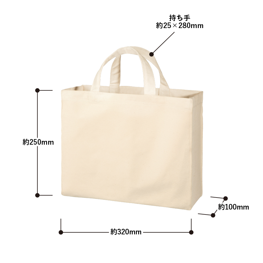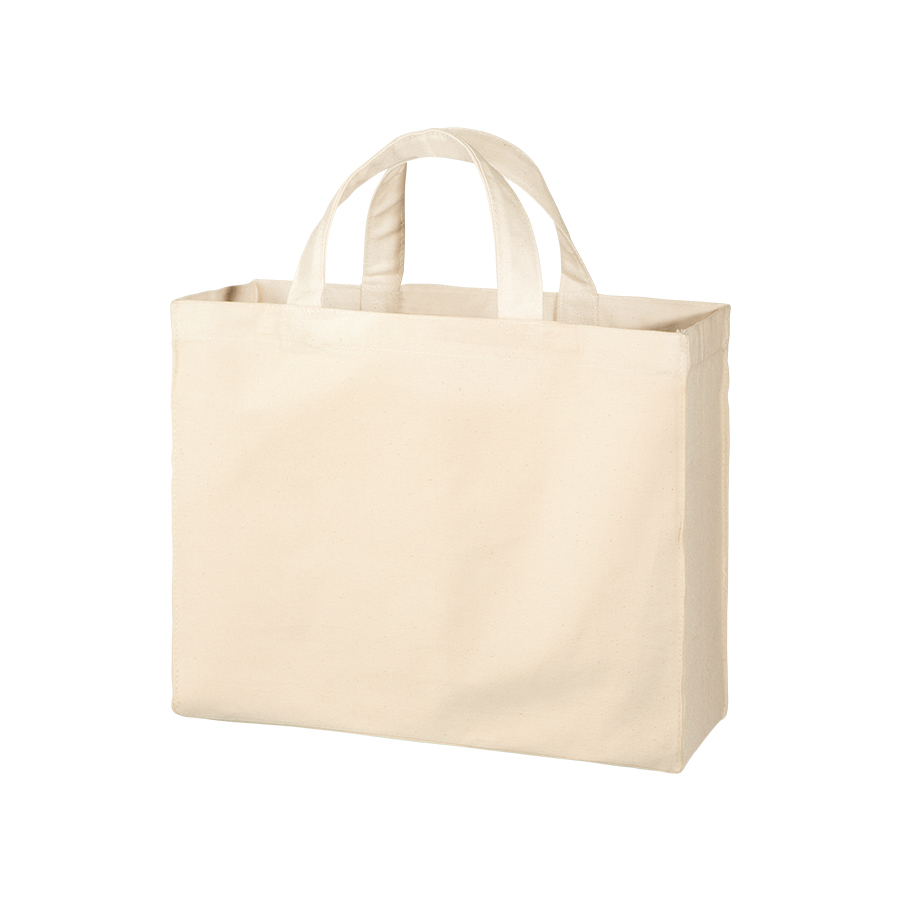 厚みのあるコットン生地のスクエアトートです。A4サイズが収容可能で企業用ノベルティや個人利用など幅広い用途にご利用いただけます。※エコマーク付