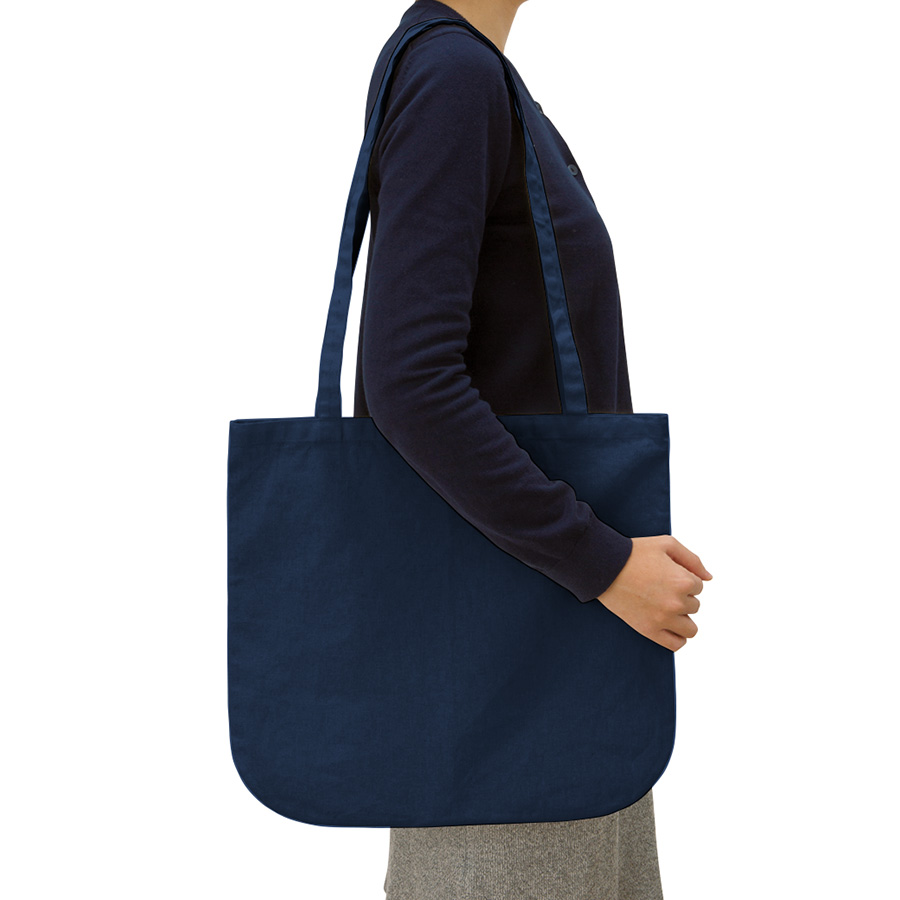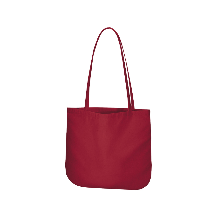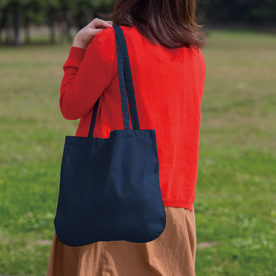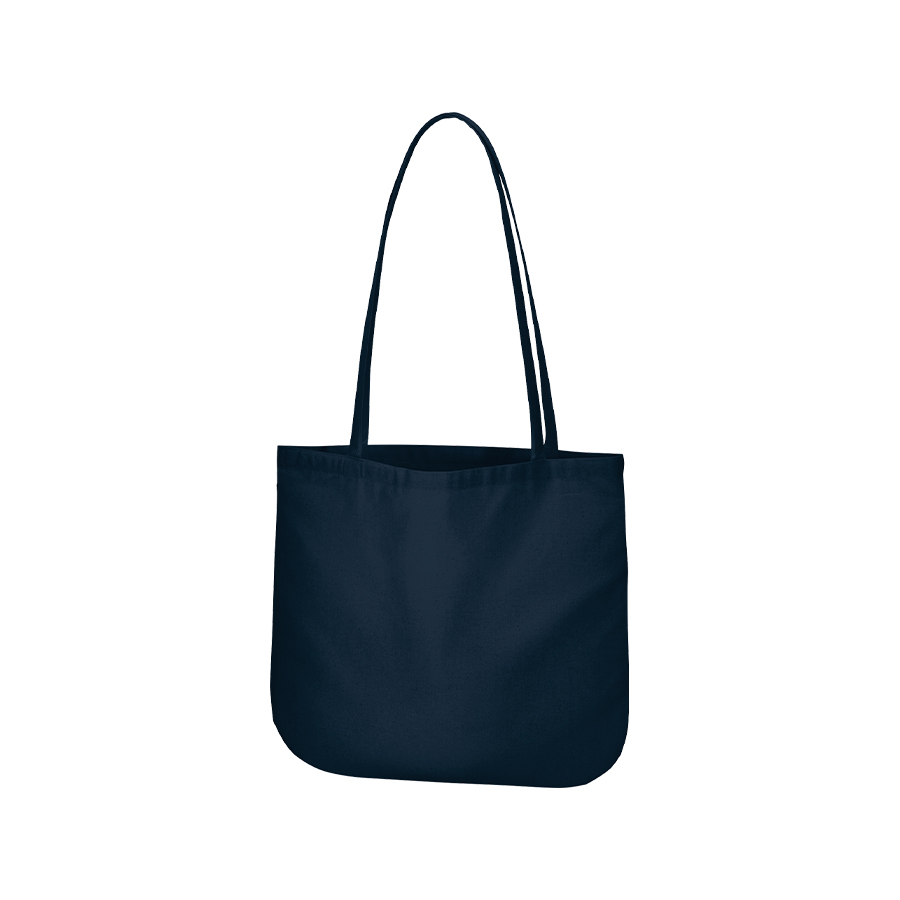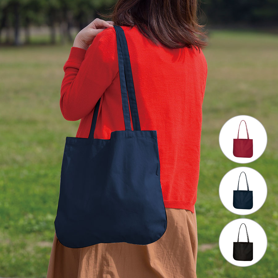 長い持ち手に丸み帯びたフォルムが可愛い、旬のリラクシースタイルのロングショルダーコットンバッグです。5オンスのコットン生地なので透けにくく、コンパクトに折りたたむことができるので、サブバッグやエコバッグとして使いやすいサイズです。