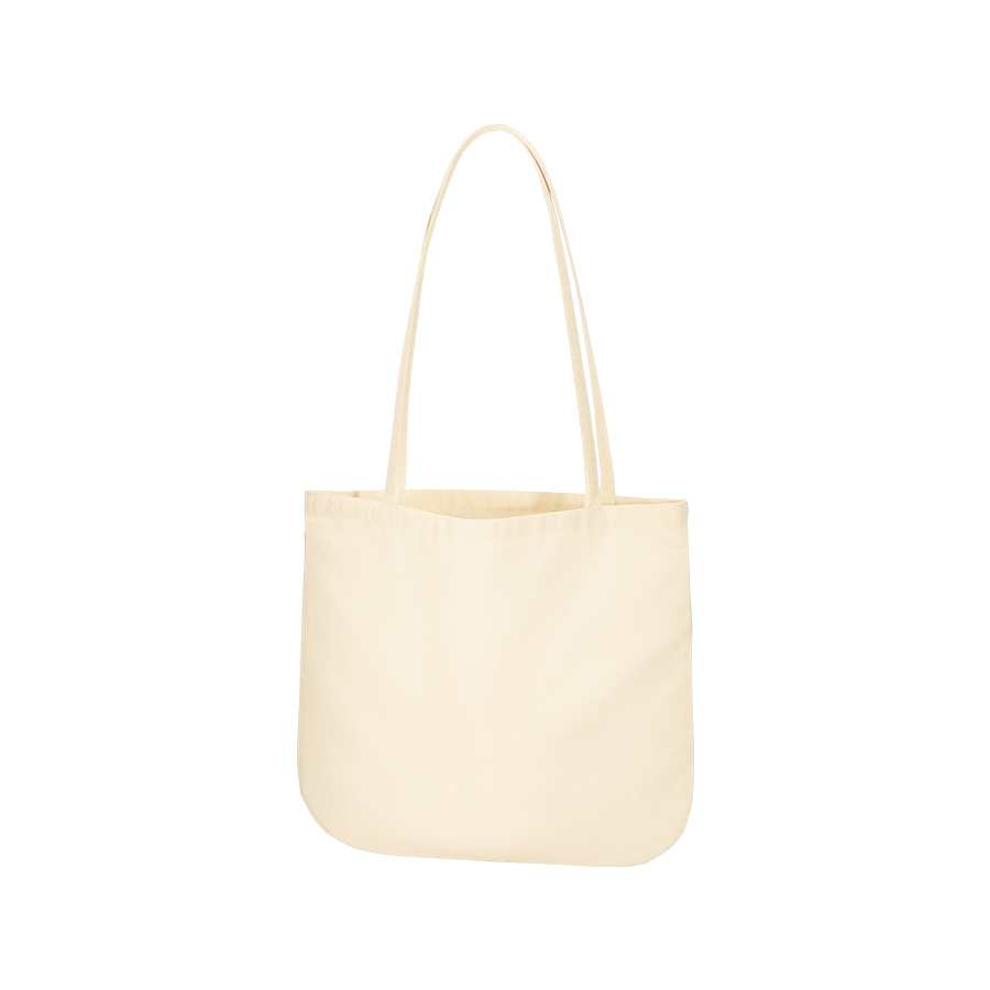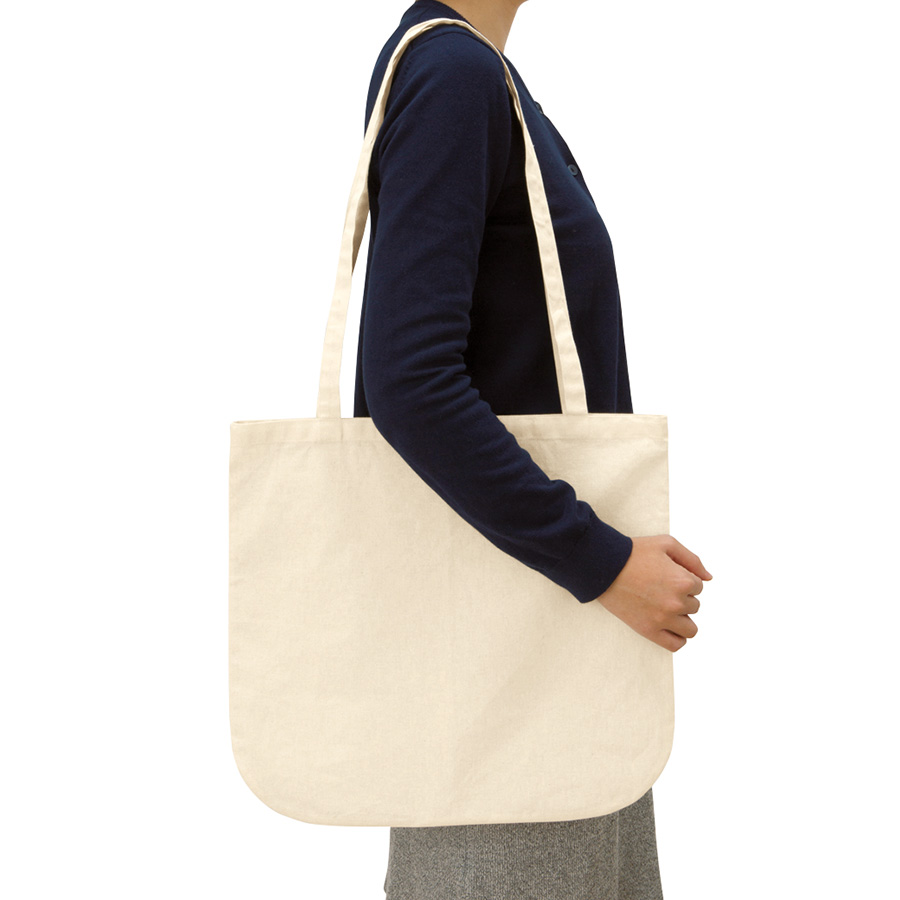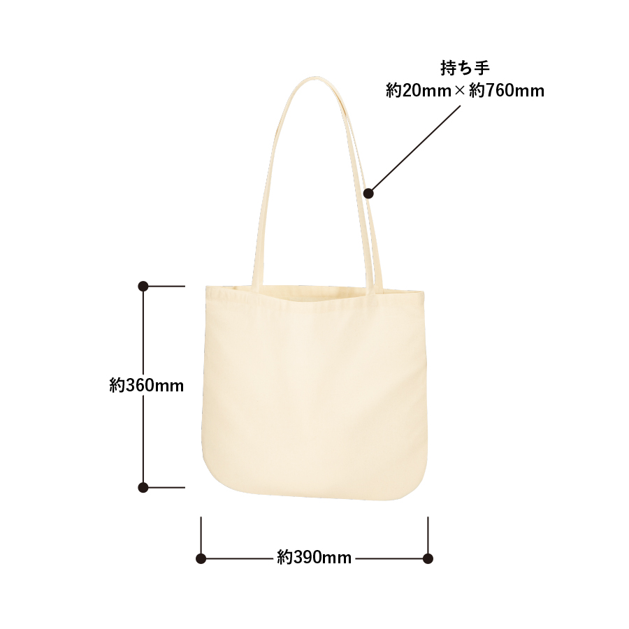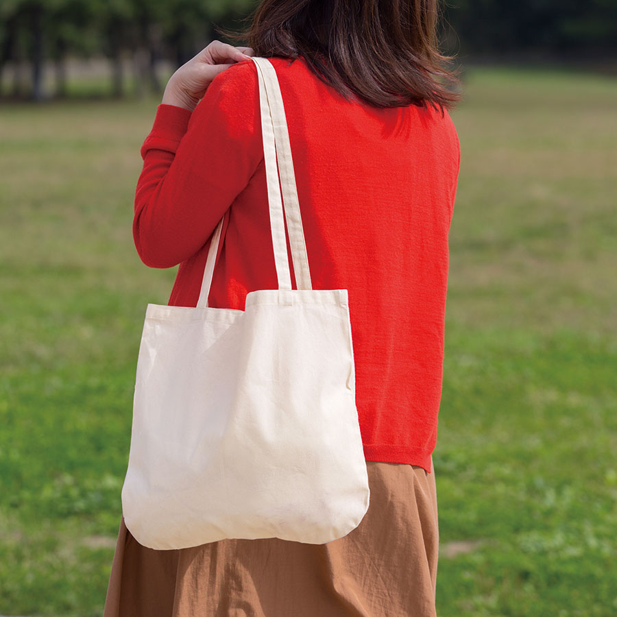 長い持ち手に丸み帯びたフォルムが可愛い、旬のリラクシースタイルのロングショルダーコットンバッグです。5オンスのコットン生地なので透けにくく、コンパクトに折りたたむことができるので、サブバッグやエコバッグとして使いやすいサイズです。