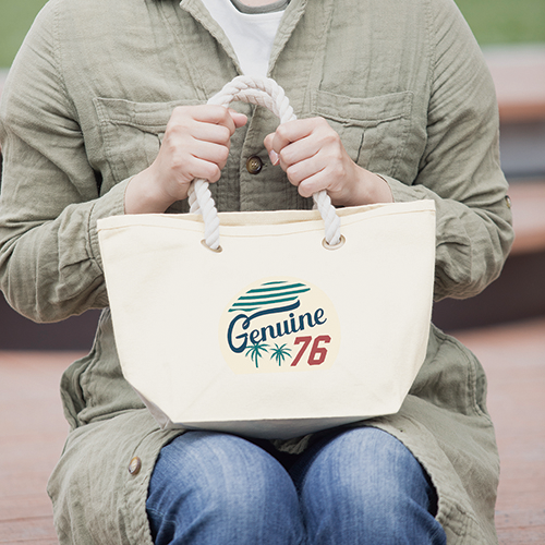 キャンバス地特有の柔らかいナチュラル生地の色味に、太めのロープハンドルがポイントのマリントート!しっかりとした12オンスのキャンバスとハトメでのディテールで高級感もあり、持っているだけでワンポイントなお洒落が楽しめちゃいます。爽やかな雰囲気のバッグは、プリントのデザイン次第でかわいらしくも大人な雰囲気にもなるので、楽しみ方は無限大!お散歩バッグやランチバッグ、サブバッグとしてもお使いいただけます。色やサイズの展開もあるので、ご使用予定のシーンに合わせて、デザインを作成してみてくださいね。