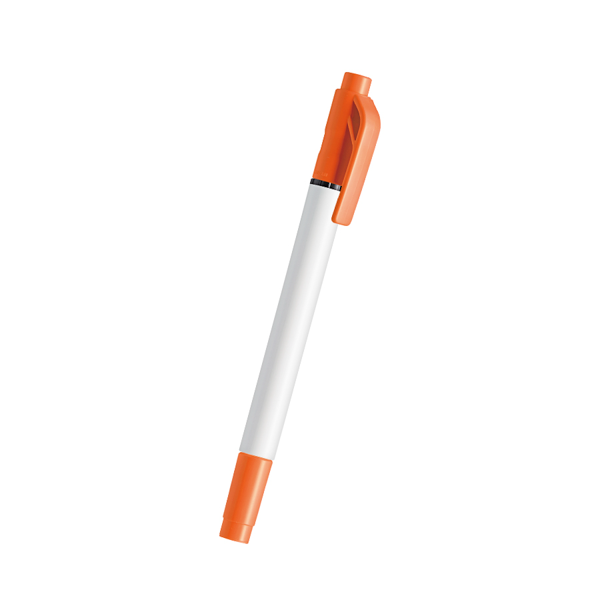 名入れの文字が映える白軸仕様の蛍光ペン。フィットラインはペン先が曲がる為、線がキレイに引けるのが特徴です。