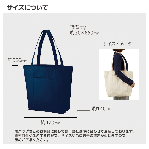 ハンドルラインが特徴の大きめのキャンバストートバッグです。持ち手が長めで肩掛けができます。外ポケットが便利で、たっぷり底マチも付いております。厚さも12オンスございますので、中身が透けず強度も高いです。荷物が多い方はもちろん、旅行に行くときやお買い物バッグとしても優秀なアイテムとなっております。世代問わず使いやすいナチュラルなカラーとなっております。 商品自体がシンプルですので、名入れをしてオリジナルのグッズ制作にもおすすめです。1色印刷はもちろん、フルカラー印刷も熱転写フルカラーとテキスタイルインクジェットの2種からお選び頂けます。 Lサイズの他にSサイズ、Mサイズがございます。