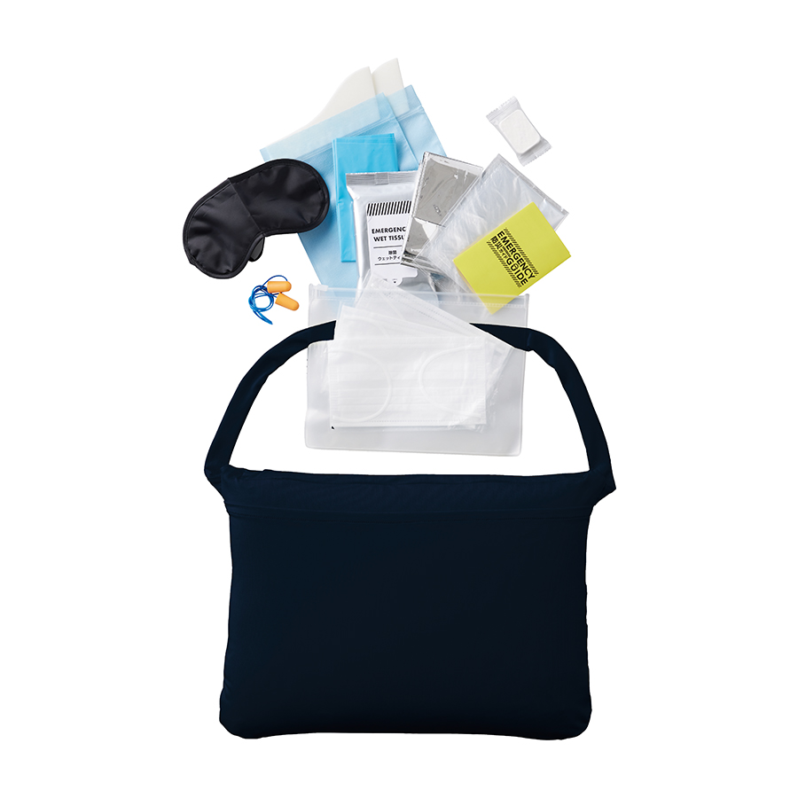 | 付属品 | 取説付/EVAポーチ(携帯トイレ・携帯トイレ付属ごみ袋・アイマスク・耳栓・ポリ袋・ウェットティシュ・アルミブランケット・圧縮タオル・マスク・防災ガイド) |