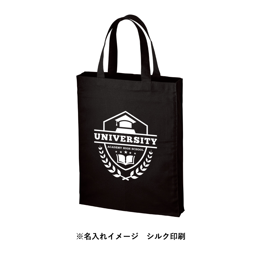 5オンスのバッグシリーズに縦型のスクエアトートが登場しました。約50mmのマチがついており、A4サイズが入るので展示会でのカタログ配布用のバッグとして人気のあるデザインです。通勤・通学時のサブバッグとしても使い勝手の良いサイズ感となっております。パンフレットなどの資料を配布するオープンキャンバスやセミナーのノベルティとしておすすめです。