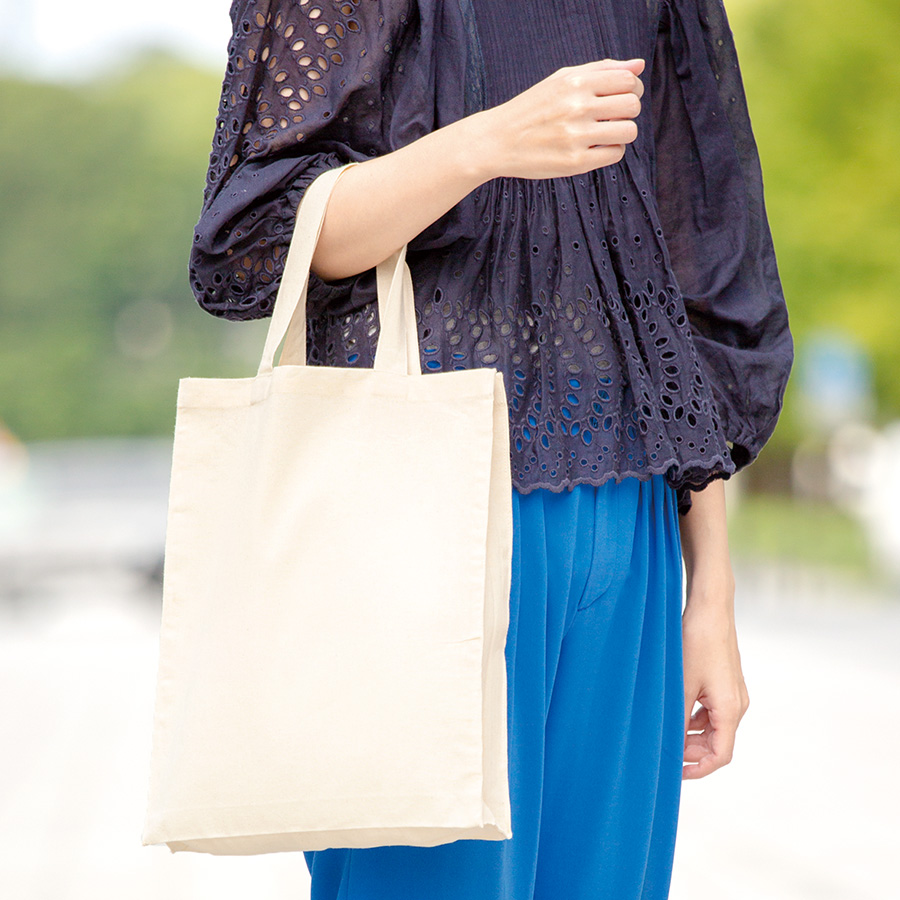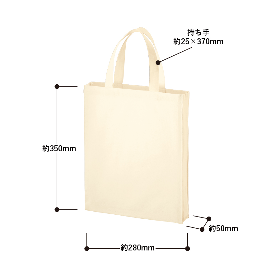 5オンスのバッグシリーズに縦型のスクエアトートが登場しました。約50mmのマチがついており、A4サイズが入るので展示会でのカタログ配布用のバッグとして人気のあるデザインです。通勤・通学時のサブバッグとしても使い勝手の良いサイズ感となっております。パンフレットなどの資料を配布するオープンキャンバスやセミナーのノベルティとしておすすめです。※エコマーク付