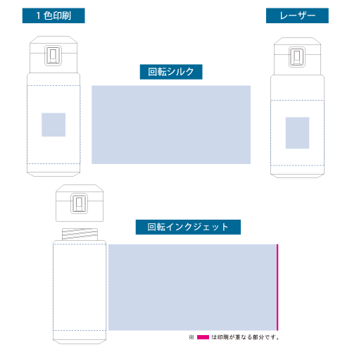 | 回転シルク印刷範囲 | 側面(大)W203×H100mm ※全周印刷にはならず余白が生じます。 |