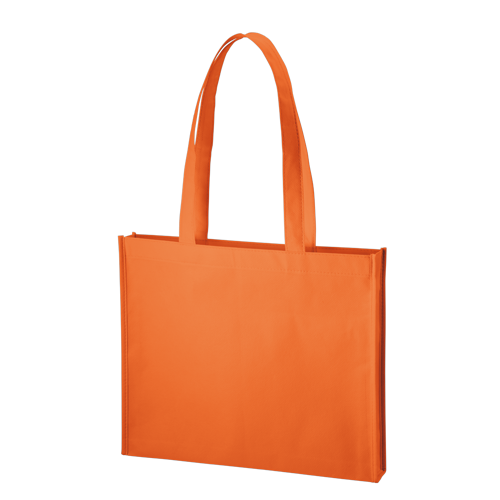 スリムな横型の不織布バッグです。持ちやすいようにサイズは少し小さめにしており、ショルダーを長めにすることで肩からかけやすい仕様になっております。マチのサイズもスリムにしているので、書類を入れるのにも適しています。多色展開で、企業や学校のカラーに合わせてご提案頂けます。展示会やオープンキャンパスでの配布用のバッグとしておすすめのアイテムです。