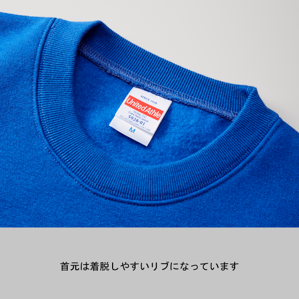 | 素材 | 表糸:綿100%、裏起毛:綿52%、ポリエステル48% 約340 g/㎡(10.0オンス) |