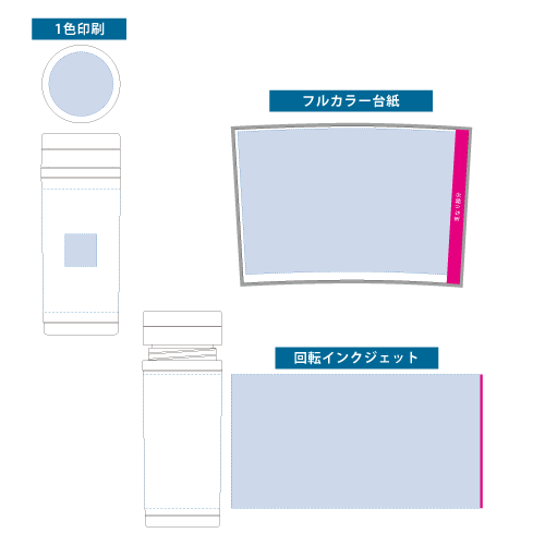 | インクジェット印刷範囲 | 天面:φ60mm、側面(大):W235×H125mm(回転インクジェット) |