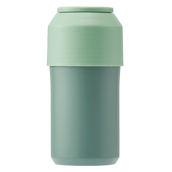 フタの深さでサイズ調整が可能です。収納できるハンドルと、使用前後の持ち運びに便利なカラビナ付き。フタを外せば通常の真空ステンレスタンブラーとしてもお使いいただけます。