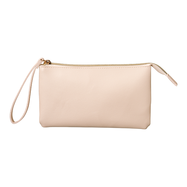 3つのポケットで分別収納に便利な、シンプルで使いやすいハンディポーチです。 スリムな形状ながら、スマホも入るたっぷり容量。長めのストラップつきなので、手首に引っかけておけば持ち運びの際も便利です。