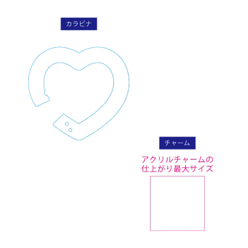 可愛くて便利な推し活アイテムとして人気のアクリルカラビナ。トレンドのハート型のアクリルカラビナに、ミニチャームをつけた、キャラグッズとしてカラビナを展開するのにおすすめの仕様です。