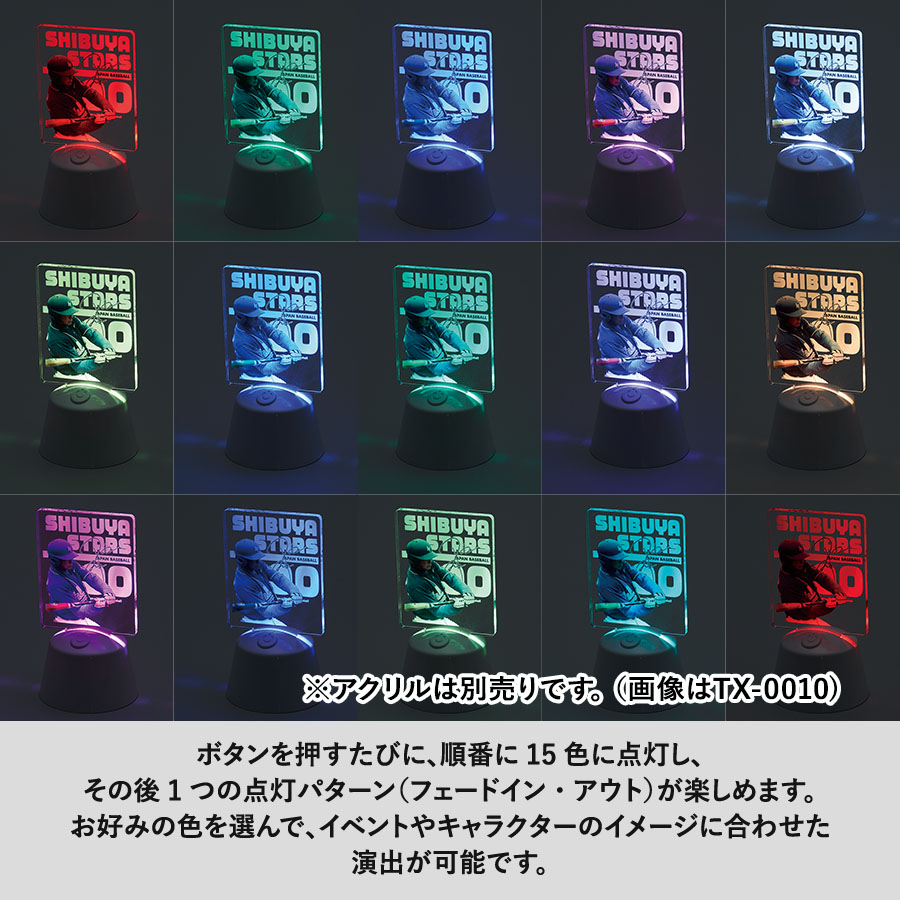 別売りのアクリルをスタンドに挿すことで、光るアクリルスタンドになり、特別感のあるアイテムです。