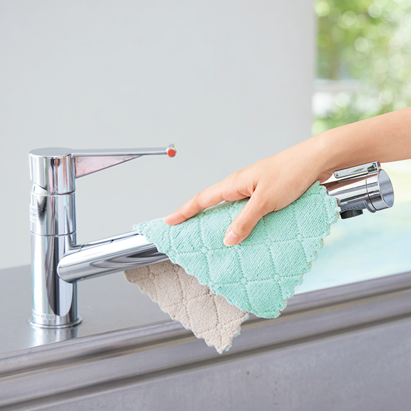 フワフワ生地で、水滴も汚れもしっかり吸着するマイクロファイバーキッチンクロスです。