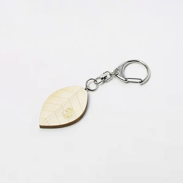 国産ヒノキの間伐材を使用した、展示会やイベント等で配布するノベルティとしておすすめのキーホルダーです。