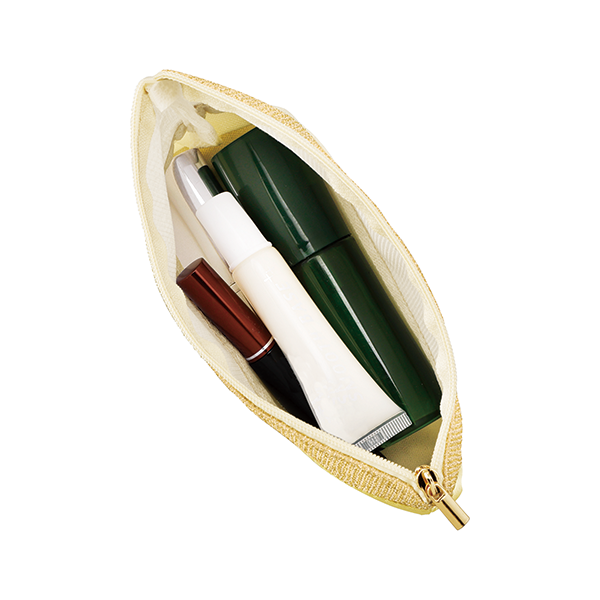 華やかなパーティーやエレガントなシーンなど、イベントシーズンにぴったりデザインの、バッグにも収まりやすくて人気の高いスリム型ポーチです。 お洒落心をくすぐるラメと、艶感が上品な素敵なサテン、2つの“キラキラ”でさらに魅力的に。アパレルやコスメなど、一緒に使って楽しいアイテムのノベルティにいかがでしょうか。