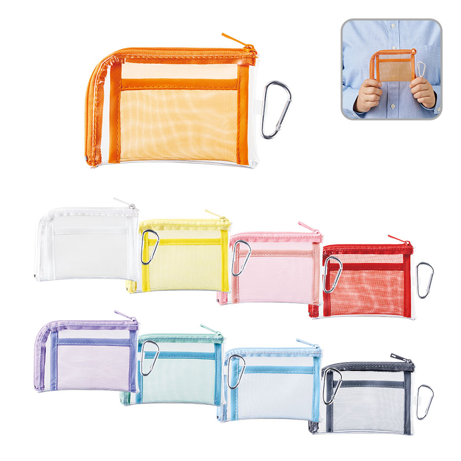 推し活にぴったりなメッシュポケット付きのクリアミニポーチです。