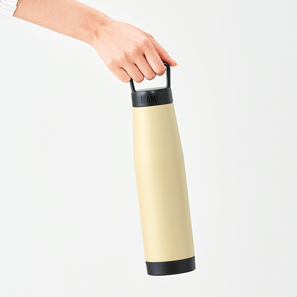高いデザイン性が人気の「CAMPS」商品。 ラバー塗装の触り心地と保冷温機能が特徴。大きめループ型キャップが持ち運びに便利。