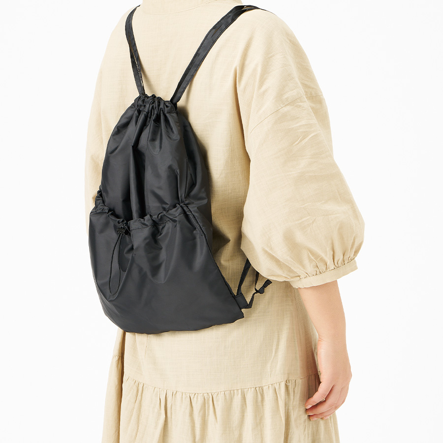 薄手で軽いポリエステル素材を使用したナップザックです。
