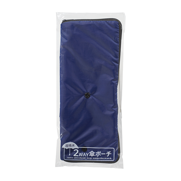 外側生地は撥水加工で雨をはじき、中側は吸水生地で傘の水滴を吸い取るケースです。 ボタンでサイズ調整ができ、流行の小さめ折傘にも対応しています。