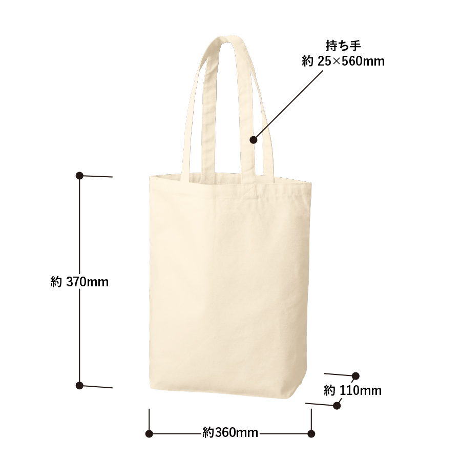 適度な厚みがあり非常に丈夫なコットン生地のトートバッグです。A4サイズが収納可能で展示会などでもたくさん資料を入れられます。企業用ノベルティはもちろん、販売品や個人利用まで幅広い用途で大人気です。肩かけ利用も可能なので、エコバッグとしてもおすすめです。※エコマーク付