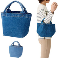 デニムと巾着のコラボが新しい、これまでにないトートバッグです。デニムの中でも特に上品な印象の2色をご用意。カジュアルでも、どこか女性らしさを残したい方におすすめのアイテムです。