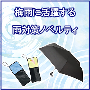 梅雨時期の雨対策グッズやボーナス商戦向けノベルティ、衣替えで活躍するアイテムなど用途やターゲット別にラインナップいたしております。