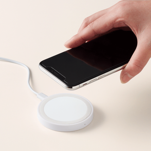 手のひらに収まるコンパクトサイズのワイヤレスチャージャーです。単色印刷はもちろん、フルカラー印刷にも対応!